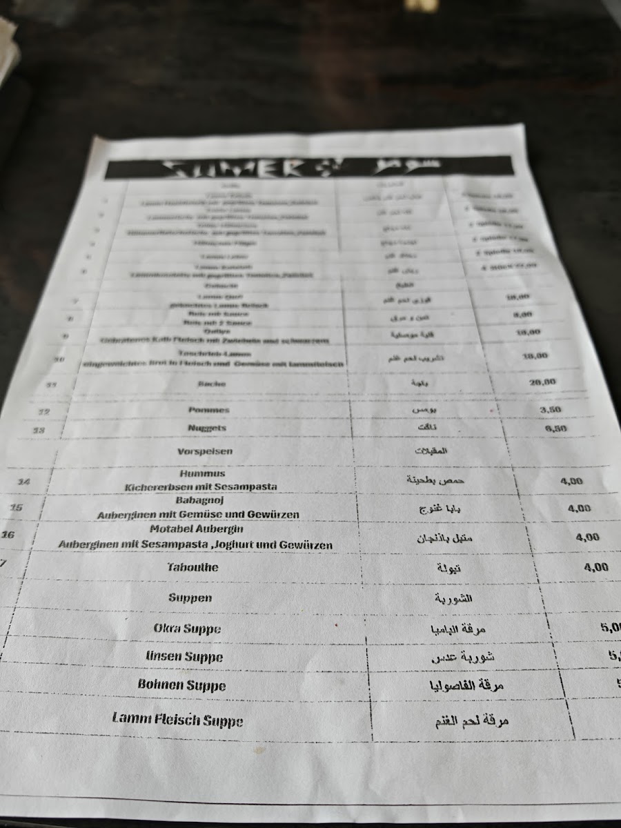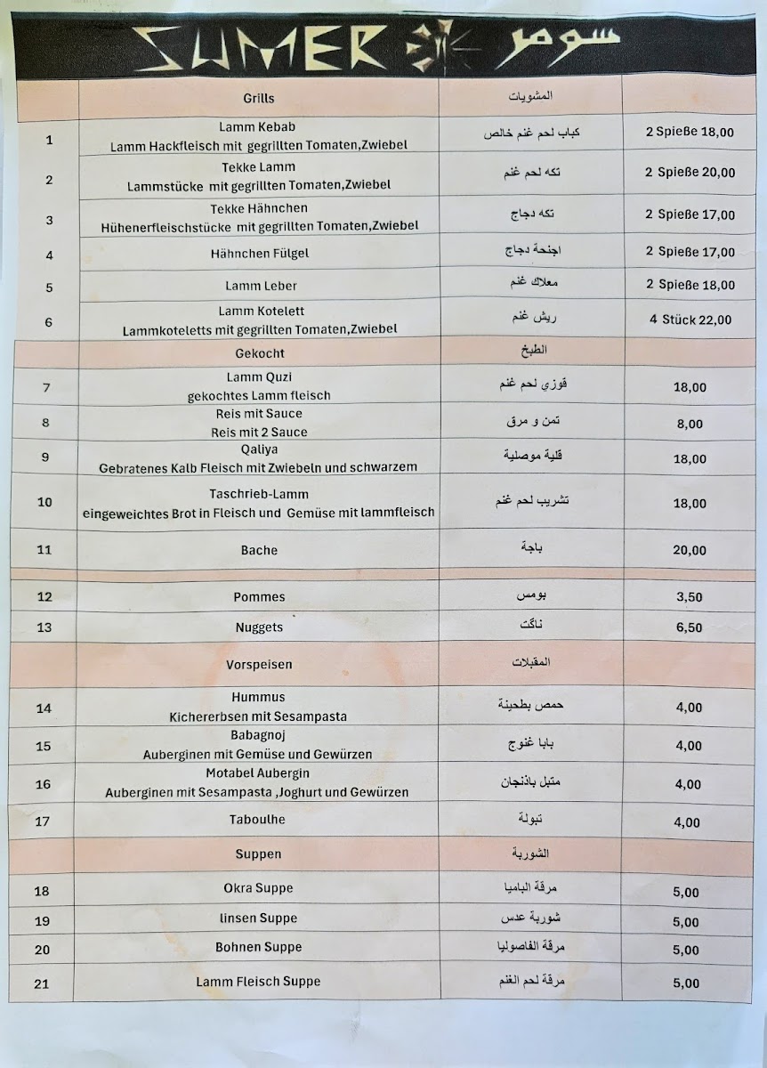 Sumer Restaurant- مطعم سومر Menu